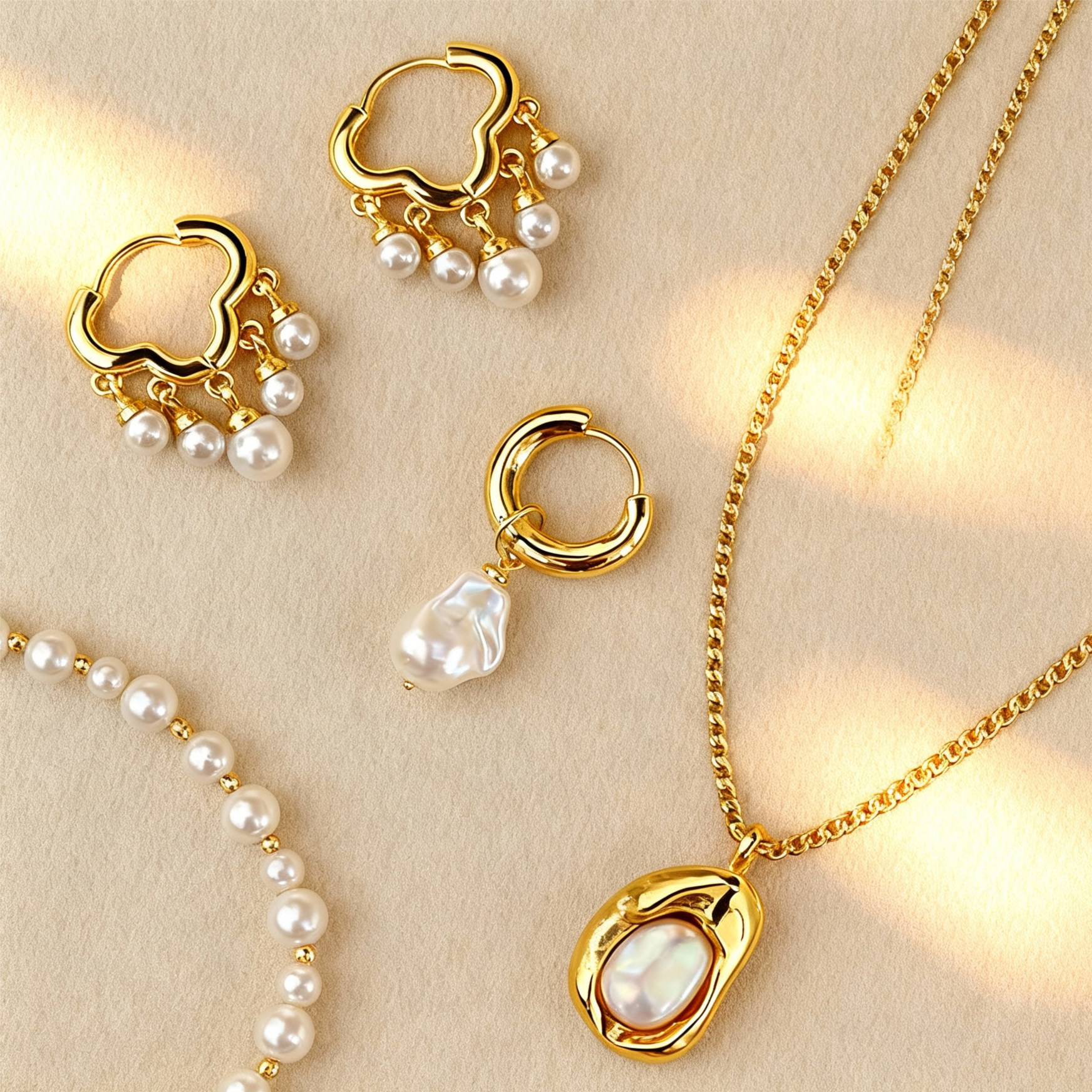 Elevate your look with our dainty pearl and gold-plated necklaces — where elegance meets everyday wear.